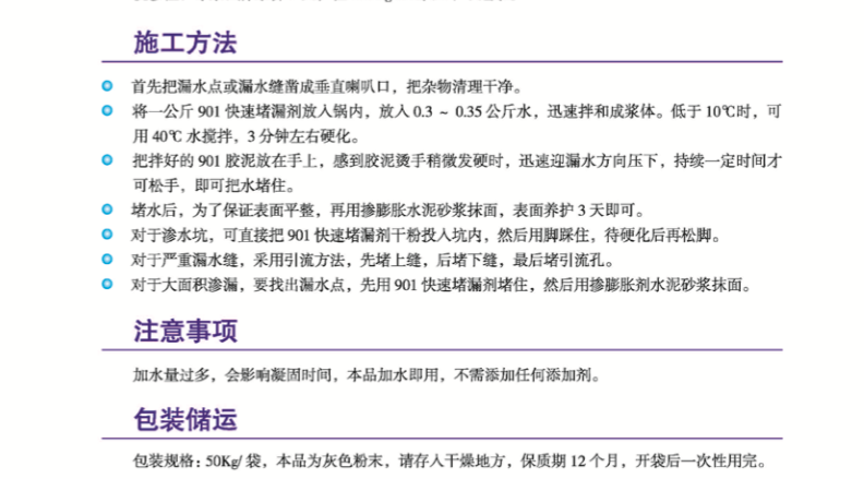 您的位置:首頁 > 產(chǎn)品展示 > 防水堵漏系列 > 901快速堵漏劑