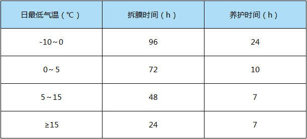 拆膜養(yǎng)護時間及環(huán)境溫度關(guān)系